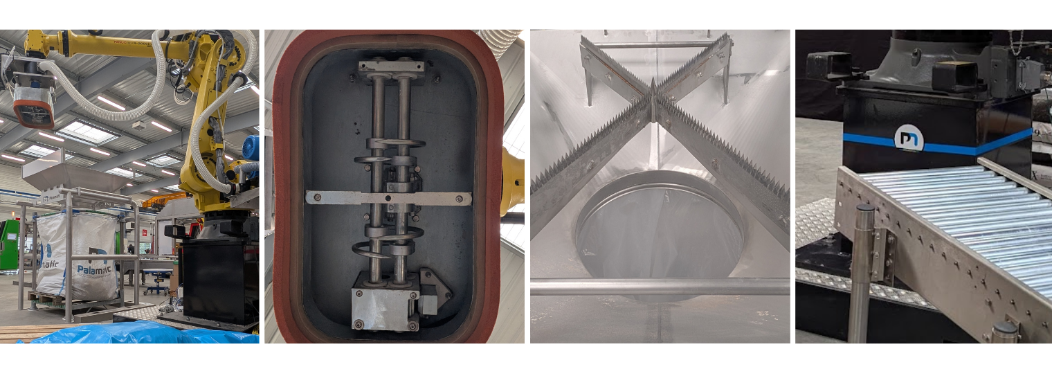 - Automatisation complète : de la prise du sac sur palette jusqu’à l’alimentation du mélange.